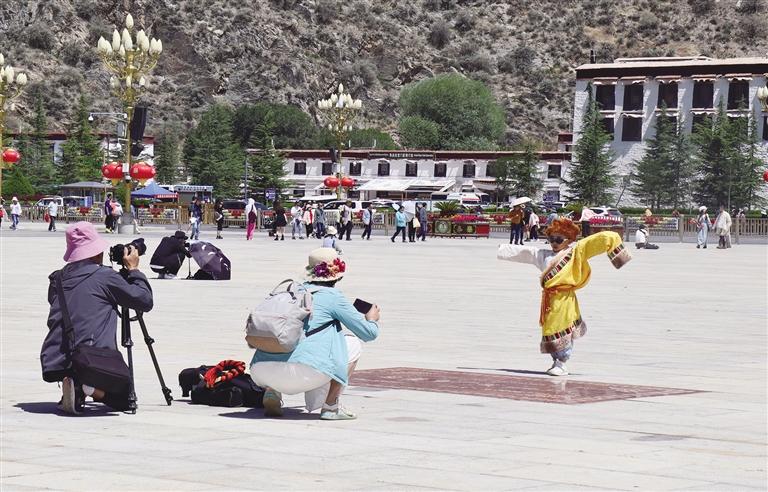 記者還了解到,今年以來(lái)西藏比較熱門(mén)的景區(qū)(點(diǎn))有布達(dá)拉宮、大昭寺、羅布林卡、巴松措、雅魯藏布大峽谷、羊卓雍措等。在布達(dá)拉宮廣場(chǎng)前,記者看到不少旅游團(tuán)以及結(jié)伴騎行來(lái)拉薩游玩的游客,布達(dá)拉宮廣場(chǎng)恢復(fù)了往日的熱鬧?!皝?lái)到西藏我才發(fā)現(xiàn),這里的風(fēng)景真的不同于其他地方,我們都非常喜歡這里,今天一早我就來(lái)到布達(dá)拉宮,實(shí)現(xiàn)了我人生的一大愿望?!眮?lái)自?xún)?nèi)蒙古的郭先生說(shuō)道。