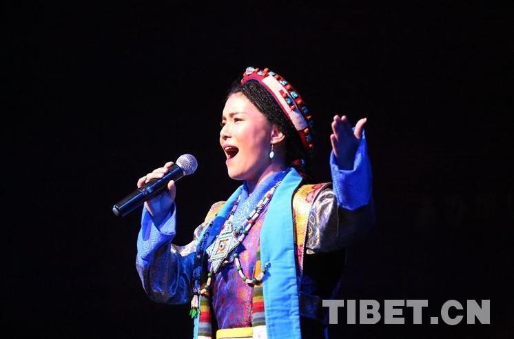 圖為開幕式現(xiàn)場(chǎng)歌手傾情演唱首屆西藏文化藝術(shù)節(jié)主題曲《格?;ㄩ_》 攝影:王佳豪
