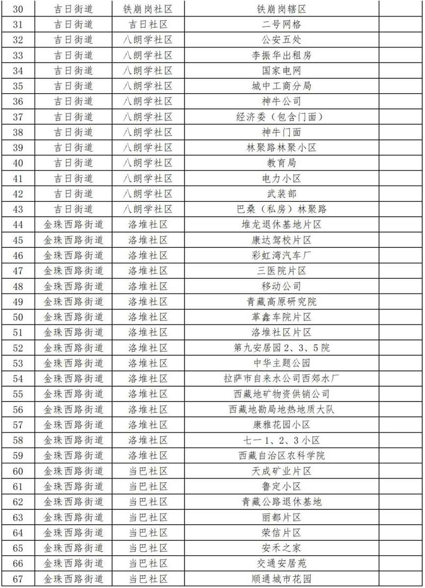 51.扎細(xì)街道雄嘎社區(qū)(除部分點(diǎn)位,詳見附件)。