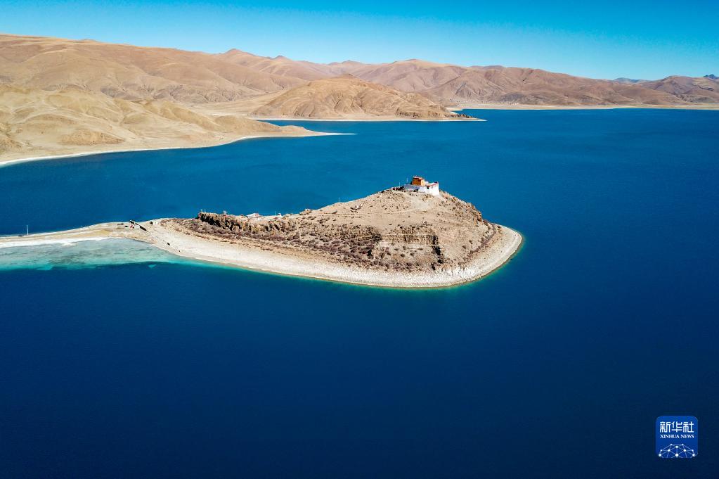 坐落于羊湖北岸一座半島上的日托寺(無(wú)人機(jī)照片,12月11日攝)。新華社記者 姜帆 攝