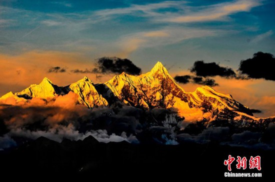 12月25日,展覽中的攝影作品《金色的南迦巴瓦》。 袁林 攝