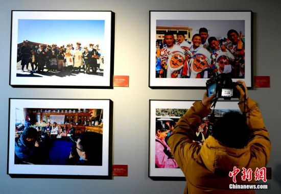 12月25日,第十五屆西藏珠穆朗瑪攝影大展在拉薩西藏牦牛博物館開幕。本次攝影大展共展出280件攝影作品,題材涉及人文、風(fēng)光等多個領(lǐng)域。創(chuàng)作手法涵蓋藝術(shù)、紀(jì)實、創(chuàng)意等諸多門類,作品風(fēng)格多樣、各具特色,彰顯了西藏地域文化特色。圖為觀眾正在欣賞展覽中的攝影作品。 李林 攝
