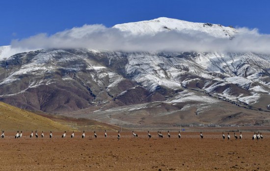 黑頸鶴是國家一級保護(hù)動(dòng)物,主要棲息在海拔2500米至5000米的高原、草甸、沼澤地帶。拉薩北部的林周縣平均海拔約4200米,是黑頸鶴的主要越冬地之一。