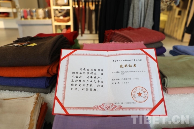 牦牛的生存環(huán)境決定了牦牛絨比普通羊毛更加保暖、柔軟,但也帶來了紡織上的技術(shù)難題。牦牛絨很細(xì),纖維的卷曲較少并且卷曲形態(tài)不規(guī)則,成條成紗難度大。在不斷的探索中,團(tuán)隊(duì)發(fā)現(xiàn)牦牛絨與蠶絲混紡能改善牦牛絨的可紡性,這解決了一大技術(shù)難題,公司還因此獲得知識產(chǎn)權(quán)專利及多項(xiàng)科學(xué)技術(shù)獎項(xiàng)。