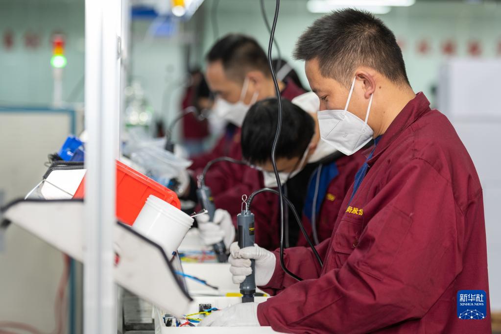 工人在電器裝配生產(chǎn)線上作業(yè)(2022年11月28日攝)。新華社記者周荻蕭 攝