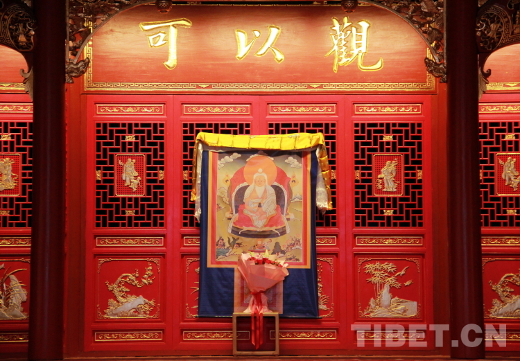 拉薩市城關(guān)區(qū)娘熱民間藝術(shù)團(tuán)成立于20世紀(jì)70年代,1999年被正式命名為“拉薩市城關(guān)區(qū)娘熱民間藝術(shù)團(tuán)”。40多年來,藝術(shù)團(tuán)以繼承和發(fā)展藏戲?yàn)榧喝?,常年活躍在基層演出,深受歡迎。圖為拉薩市城關(guān)區(qū)娘熱民間藝術(shù)團(tuán)演出時(shí)舞臺(tái)上供奉的湯東杰布唐卡,湯東杰布是藏族民間傳說中創(chuàng)建藏戲的戲神和修建橋梁的工匠“祖師”攝影:劉莉