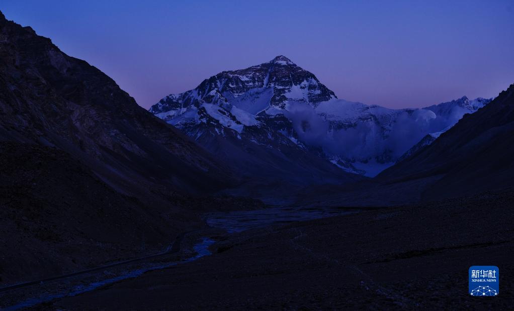 6月4日拍攝的太陽完全落山之后的珠峰。新華社記者 費(fèi)茂華 攝
