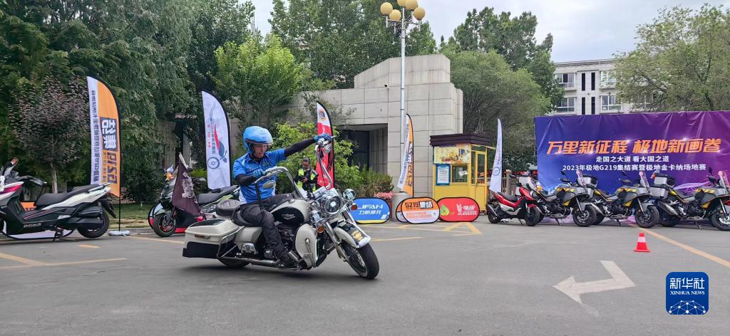 極地G219集結(jié)賽啟動儀式上,參賽騎手亮相表演。受訪者供圖