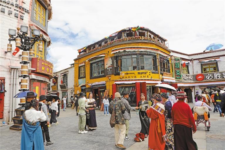 在這里,有林芝工布公園經(jīng)久不息的鍋莊舞、阿里獅泉河兩岸休閑散步的市民、山南昌珠廣場(chǎng)夜間文化和旅游消費(fèi)集聚區(qū)的喧囂……這里匯聚著高原360多萬各族群眾的鮮活生活之美。