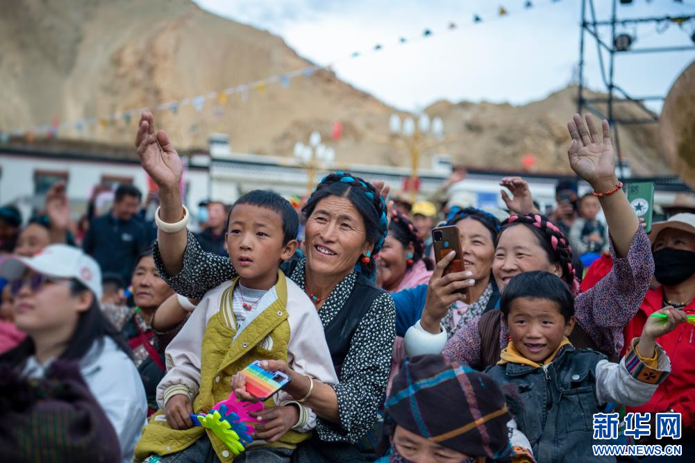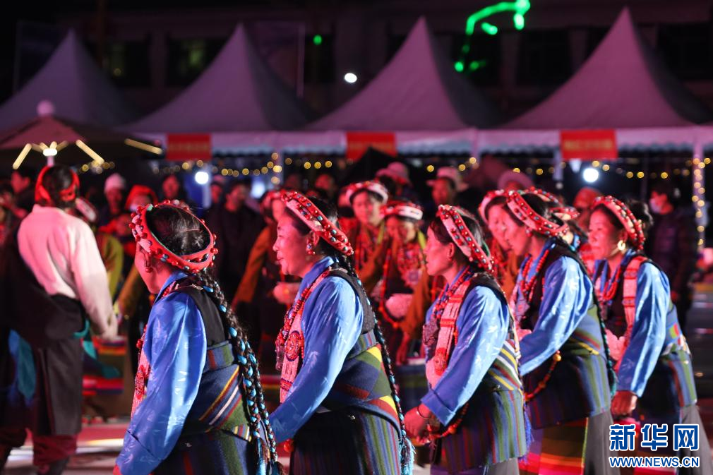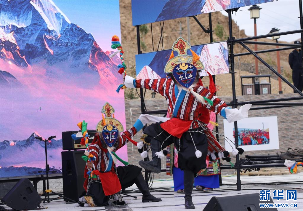 7月23日,在西藏定日2023珠峰音樂美食節(jié)現(xiàn)場(chǎng),民間藝術(shù)團(tuán)表演國家級(jí)非物質(zhì)文化遺產(chǎn)定日洛諧。新華網(wǎng)發(fā) 李騰 攝