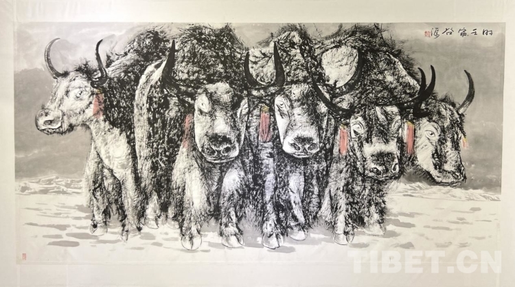 汪仕民介紹,此次《牦牛志·水墨西藏》個(gè)人作品展上,除了水墨作品外,還特地安排了一部分去年疫情封控期間的牦牛畫作和系列風(fēng)景作品配合這次的展出,希望特殊時(shí)期的作品與這次牦牛水墨系列作品能給拉薩市民帶來一份愜意,和饕鬄般美的享受盛宴?!拔乙蚕Mㄟ^這次兩百余幅畫作的展出,陶冶豐富拉薩的情操與文化生活,也為西藏文化藝術(shù)發(fā)展盡一份綿力?!蓖羰嗣裾f。