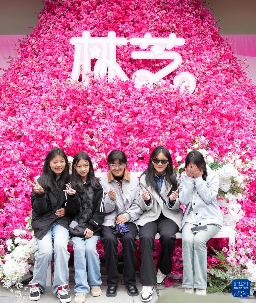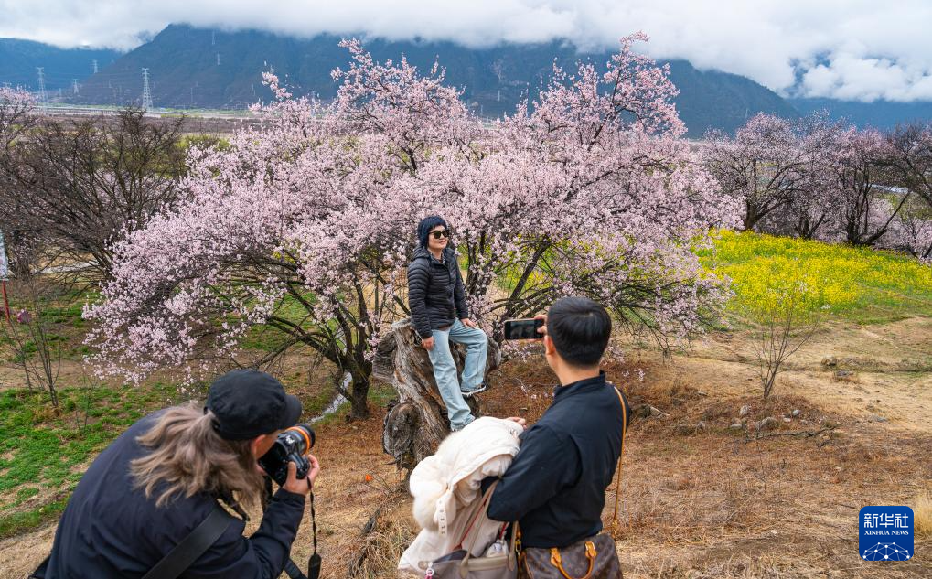 3月31日,游客在林芝市第二十一屆桃花旅游文化節(jié)活動(dòng)現(xiàn)場(chǎng)拍照留念。新華社記者 丁汀 攝