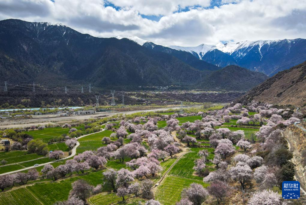林芝市巴宜區(qū)朵當(dāng)村盛開(kāi)的桃花(3月30日攝,無(wú)人機(jī)照片)。新華社記者 丁增尼達(dá) 攝