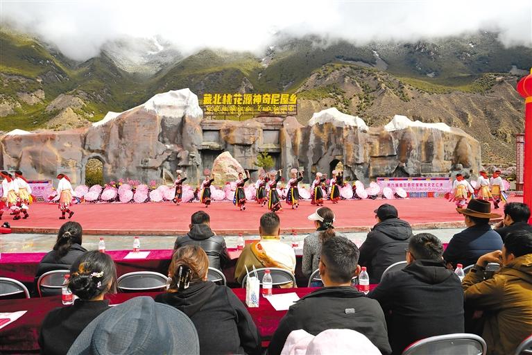 近日,尼屋鄉(xiāng)第三屆“鄉(xiāng)村振興 那曲奮進”活動成果展暨那曲市嘉黎縣尼屋鄉(xiāng)第九屆桃花文藝匯演活動舉辦,來自全國各地的游客與當地群眾一起觀看表演,現場氣氛熱烈。