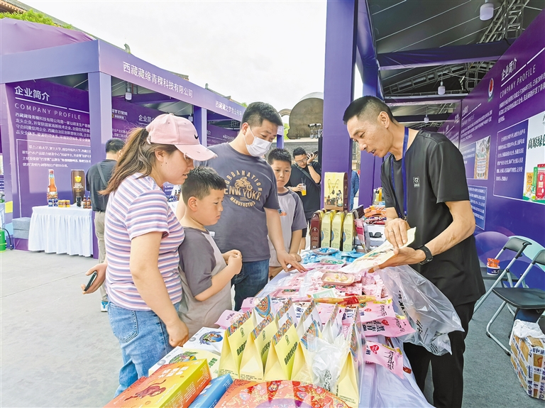 “牦牛肉干、青稞餅干等西藏特產(chǎn)都是健康綠色有機(jī)食品,應(yīng)該讓更多的人了解?!睆暮眮砦靼猜糜蔚睦壮F(xiàn)場(chǎng)購買了一聽青稞啤酒,打開品嘗后,他豎起了大拇指。從未踏足西藏的他,在西安品嘗到了西藏“味道”。
