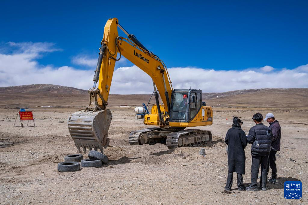 在那曲市聶榮縣尼瑪鄉(xiāng),農牧民選手在進行挖掘機操作技能的比賽(5月11日攝)。新華社記者孫非 攝