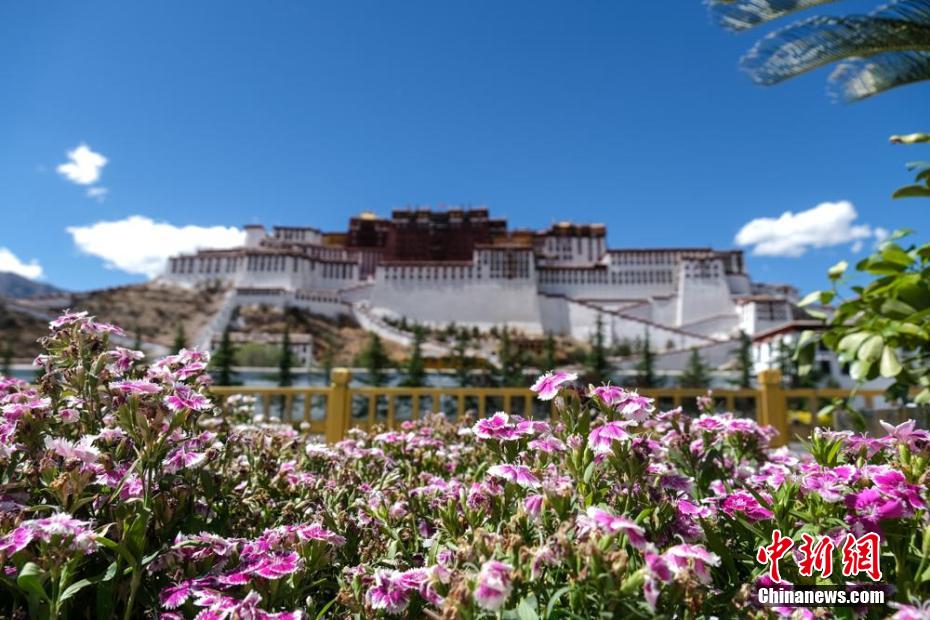 布達(dá)拉宮位于西藏自治區(qū)拉薩市紅山上,是一座古代宮堡式建筑群。布達(dá)拉宮先后被國務(wù)院公布為第一批全國重點(diǎn)文物保護(hù)單位,被聯(lián)合國教科文組織公布為世界遺產(chǎn)名錄。近日,高原入夏,布達(dá)拉宮周邊繁花盛開、綠柳成蔭,藍(lán)天白云下更顯秀麗。圖為5月28日,夏日鮮花與布達(dá)拉宮。