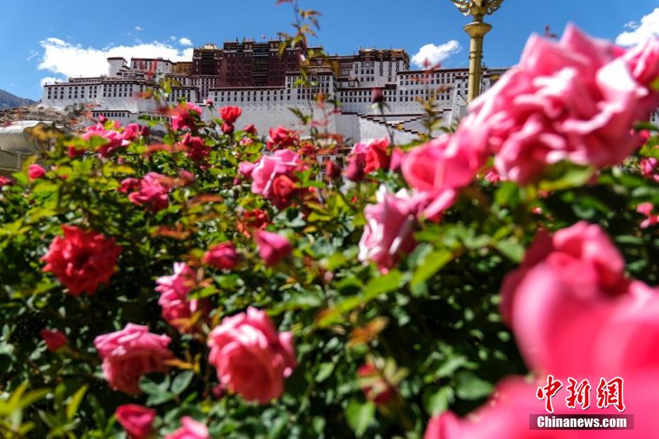 拉薩布達(dá)拉宮腳下綠化帶中盛開的月季。