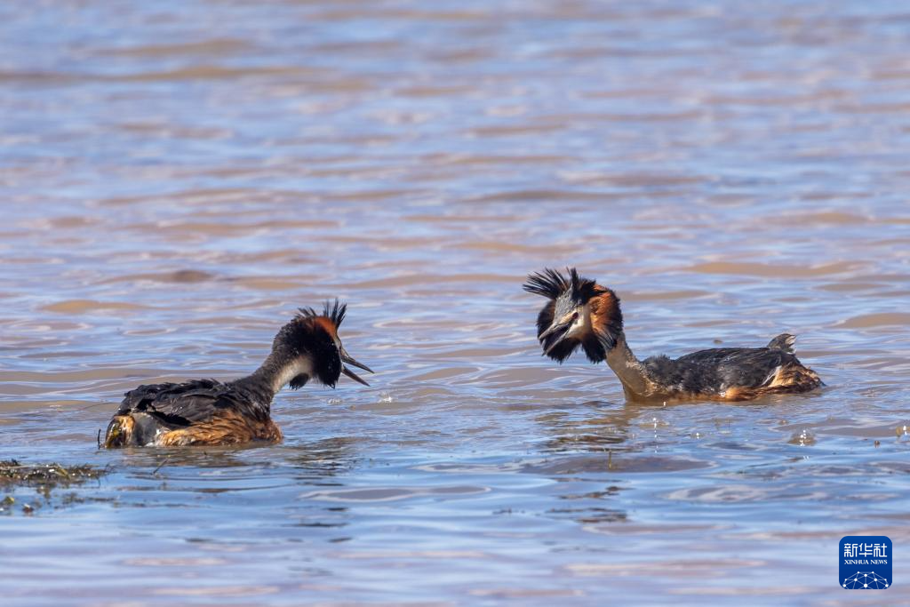 這是6月7日拍攝的鳳頭鸊鷉。新華社記者 姜帆 攝