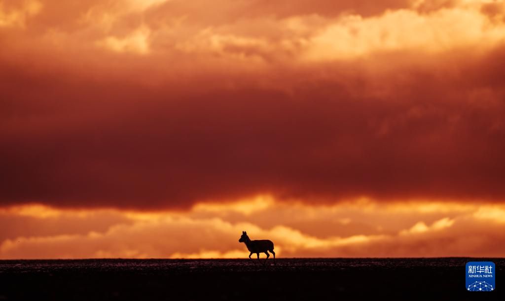 6月13日傍晚在羌塘國(guó)家級(jí)自然保護(hù)區(qū)拍攝的一只藏羚羊。新華社記者 費(fèi)茂華 攝