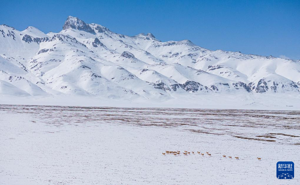 這是雪地中遷徙的藏羚羊(5月8日攝)。新華社記者 丁增尼達(dá) 攝