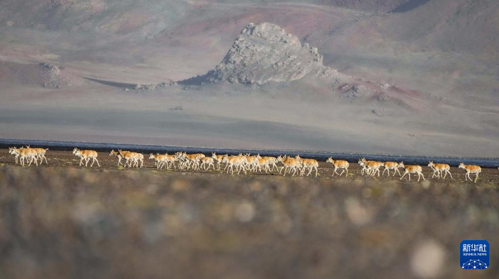 遷徙途中的藏羚羊(6月13日攝)。新華社記者 晉美多吉 攝