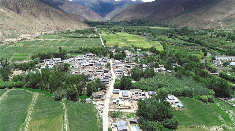 圖為位于溫曲河谷的山南市乃東區(qū)結(jié)巴鄉(xiāng)格桑村1組俯瞰圖。通訊員 潘高 記者 汪純 攝