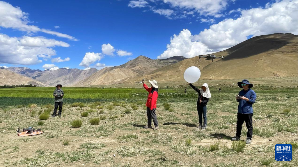 團(tuán)隊(duì)開展探空氣球大氣廓線觀測和無人機(jī)熱紅外影像獲取。(中國科學(xué)院空天信息創(chuàng)新研究院供圖)