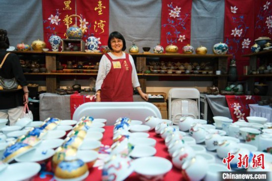 8月7日,拉薩進(jìn)口商品展覽會(huì)現(xiàn)場,臺灣陶藝師白芃絪在自己的展位上。中新社記者 江飛波 攝