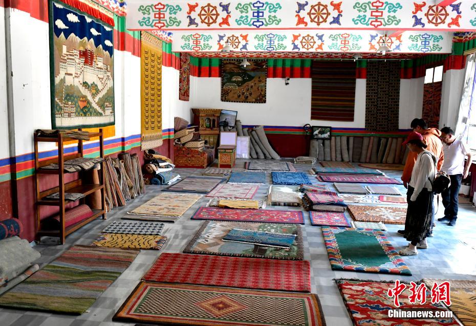 藏毯是世界三大名毯之一,以艷麗的色彩、濃厚的民族風(fēng)格、鮮明的地域特色聞名遐邇。圖為8月16日,西藏拉薩的一家藏毯廠里,游客選購圖案精美的藏毯。中新社記者 李林 攝