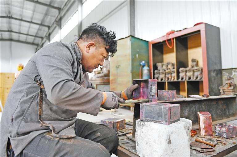 位于拉薩市達(dá)孜區(qū)的西藏羅占民族手工藝發(fā)展有限公司是西藏自治區(qū)白納鍛銅技藝傳習(xí)基地,為了讓白納鍛銅技藝后繼有人、發(fā)揚(yáng)光大,近年來,公司將這項(xiàng)非遺技藝運(yùn)用于日常生活用品制作、文創(chuàng)產(chǎn)品開發(fā),并結(jié)合當(dāng)?shù)芈糜螛I(yè)特點(diǎn),申請(qǐng)了白納鍛銅技藝傳習(xí)基地3A級(jí)旅游景點(diǎn),讓更多人了解白納鍛銅技藝,將白納鍛銅手工藝品帶入旅游這個(gè)大市場(chǎng)。