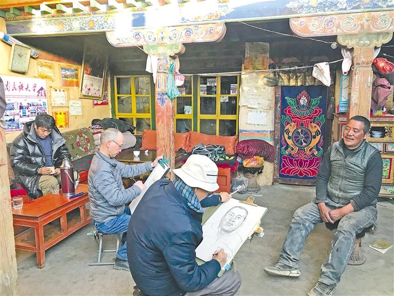 當(dāng)記者詢問如何寫生采風(fēng)時,周明暉說:“作為藝術(shù)家,我們不能憑空想象,不切實際,應(yīng)多到群眾中間去,體驗生活,有感而發(fā),源于生活,高于生活,創(chuàng)作的作品才會有生命力,才會有親切感,才能感動到別人”。