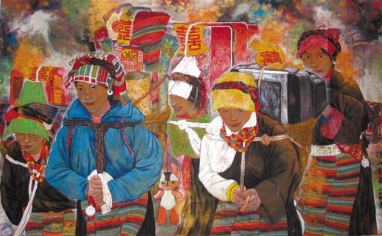 “藏族傳統(tǒng)文化不僅是中華民族文化的重要組成部分,也是世界文化的一角。將藏漢文化有機(jī)融為一體,是藝術(shù)家的歷史責(zé)任,也是藝術(shù)家取之不盡、用之不竭的永恒題材。”西藏美術(shù)家協(xié)會理事、二級美術(shù)師、西藏美術(shù)館展陳部主任周明暉說。