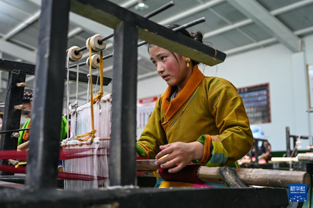 9月1日,在西藏日喀則市仁布縣特色產(chǎn)業(yè)孵化園,亞德細(xì)褐羊毛織品農(nóng)民專業(yè)合作社工作人員在車間里織布。新華社記者 孫瑞博 攝