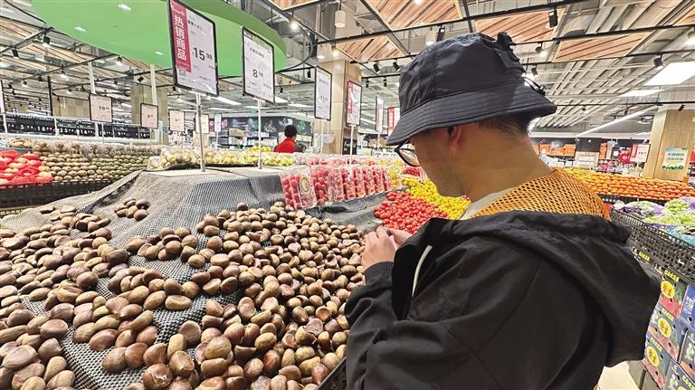 10月10日,記者在拉薩市娘熱路的一家超市看到,一顆顆新鮮的板栗被擺放在貨架上,果形飽滿、光澤誘人,引得不少市民駐足挑選?!懊磕赀@個(gè)季節(jié)我都會(huì)買一些板栗,不僅因?yàn)樗鼈兾兜篮?,而且?duì)身體也有好處?!崩_市民張女士告訴記者:“前兩天,我在超市里看到有新鮮板栗賣,價(jià)格也不貴,每斤20元左右,這次準(zhǔn)備多買一些回去儲(chǔ)存起來?!?/p>