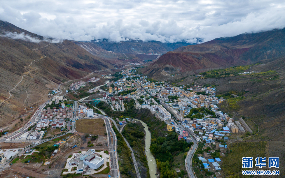 10月13日拍攝的西藏昌都市八宿縣全景(無人機(jī)照片)。新華網(wǎng) 旦增努布 攝