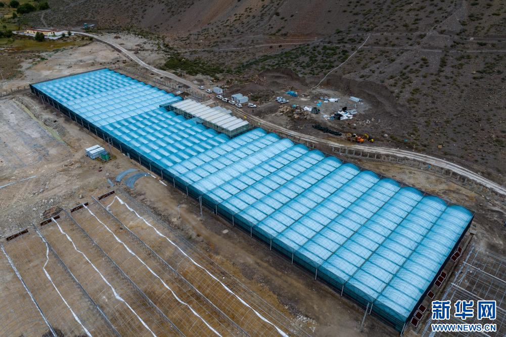 10月12日拍攝的西藏昌都市八宿縣物聯(lián)網(wǎng)植物工廠(無人機(jī)照片)。該廠于2023年建成,占地面積30余畝,一期項目種植圣女果10000平米,年產(chǎn)量約60噸。新華網(wǎng) 旦增努布 攝