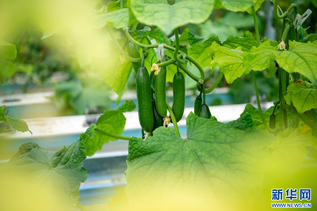 10月12日,在西藏昌都市八宿縣物聯(lián)網(wǎng)植物工廠拍攝的黃瓜。新華網(wǎng) 旦增努布 攝