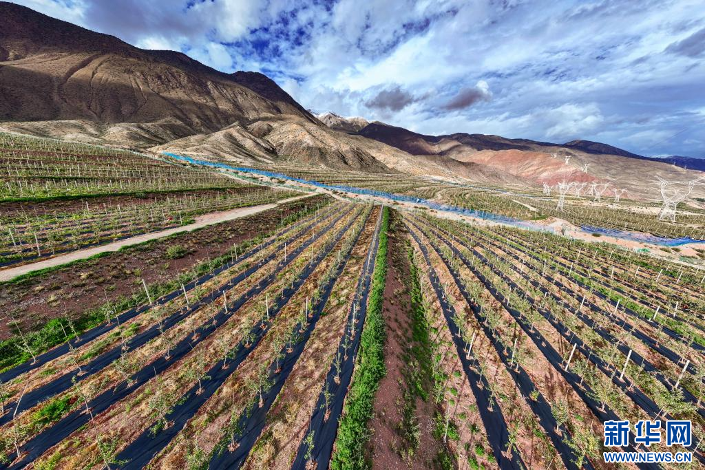 10月12日拍攝的西藏昌都市八宿縣蘋果園區(qū)(無人機(jī)照片)。該園區(qū)于2023開始陸續(xù)掛果,預(yù)計2025年進(jìn)入豐產(chǎn)期,今年園區(qū)蘋果產(chǎn)量達(dá)140余噸左右。目前全縣種植蘋果35萬余株,總面積4848.95余畝。新華網(wǎng) 旦增努布 攝