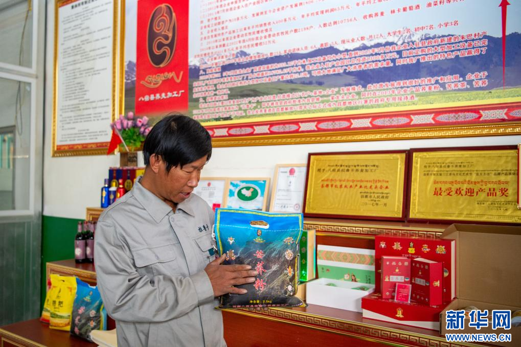 10月12日,西藏昌都市八宿縣拉魯卡蕎麥加工廠廠長赤列群培在介紹產(chǎn)品。目前,該工廠蕎麥系列產(chǎn)品有7種,年平均實現(xiàn)銷售收入400多萬元,吸納17人就業(yè)。八宿縣蕎麥種植歷史逾500年,2020年八宿蕎麥由國家農(nóng)業(yè)農(nóng)村部批準(zhǔn)為農(nóng)產(chǎn)品地理標(biāo)志。新華網(wǎng) 旦增努布 攝