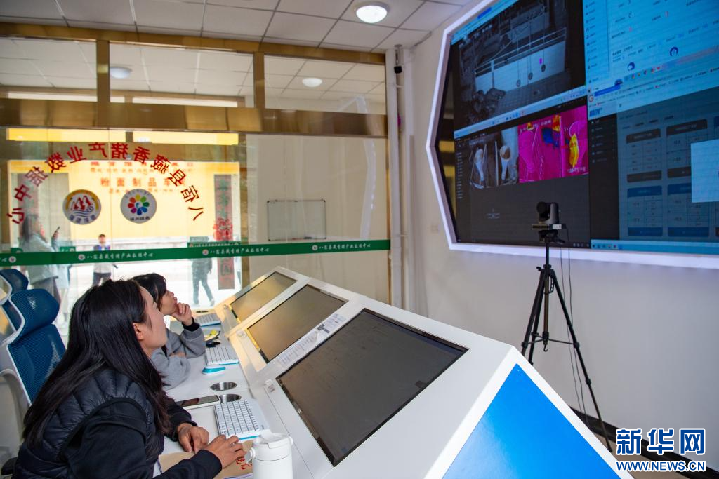 10月12日,西藏昌都市八宿縣藏香豬產(chǎn)業(yè)數(shù)據(jù)中心工作人員在監(jiān)測數(shù)據(jù)。該系統(tǒng)實現(xiàn)了對藏香豬生產(chǎn)的品控、防疫、原料分類調(diào)撥的智能化管理。新華網(wǎng) 旦增努布 攝