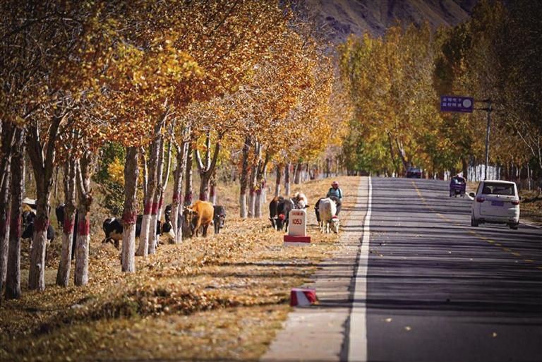 G318被稱為“中國景觀大道”,沿途壯麗絕美的風光令人心醉神迷。恰風和日麗的一天,記者一行驅(qū)車前往G318曲水段與達孜段。一路層林盡染,落葉飄飛,如詩如畫,美不勝收。