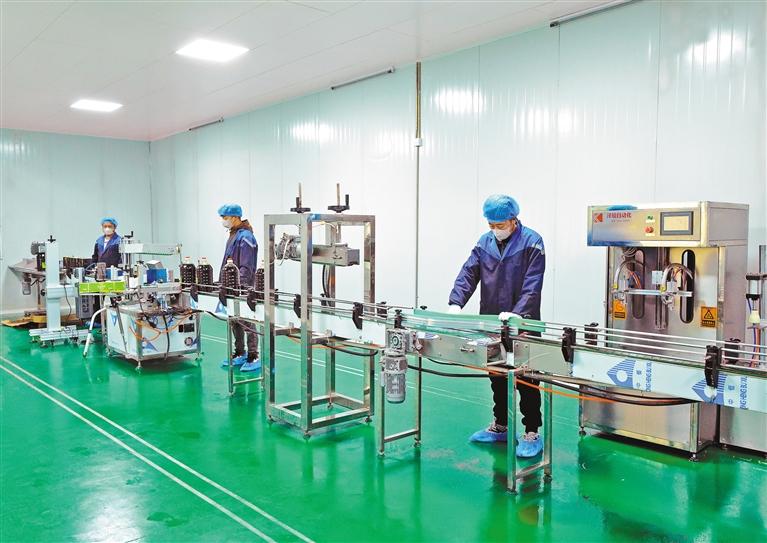 圖為丁青縣覺恩鄉(xiāng)嘎旦菜籽油生產(chǎn)農(nóng)民專業(yè)合作社的工作人員封裝打包菜籽油。記者 丹增群培 攝