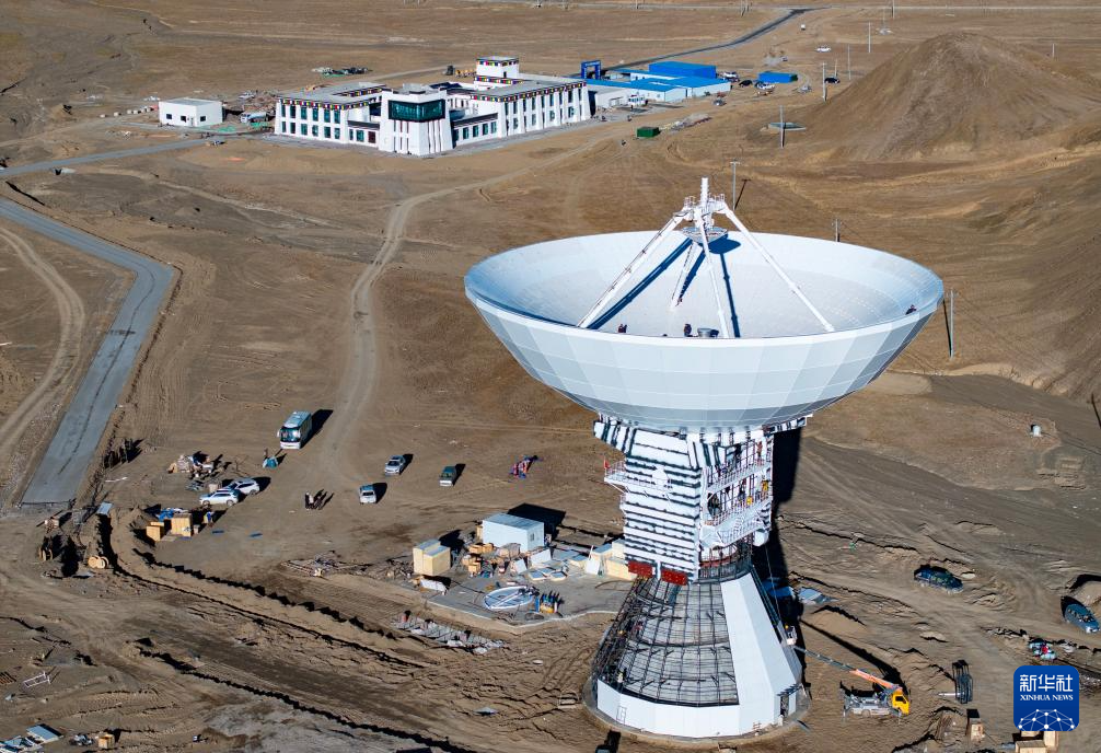 建設(shè)中的日喀則40米射電望遠(yuǎn)鏡(無人機照片,11月7日攝)。新華社記者 姜帆 攝 ??