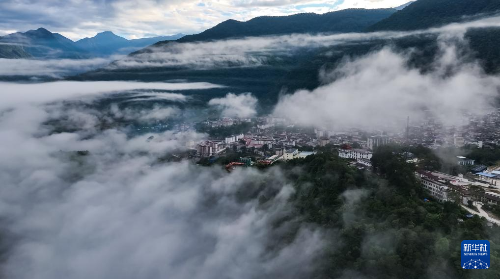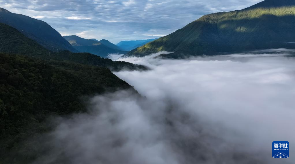 這是11月11日拍攝的墨脫縣云海景觀(無(wú)人機(jī)照片)。新華社記者 普布次仁 攝?