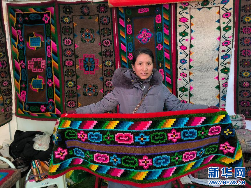 白瑪曲吉和她的門當(dāng)卡墊。新華網(wǎng)發(fā) 唐婉婷攝
