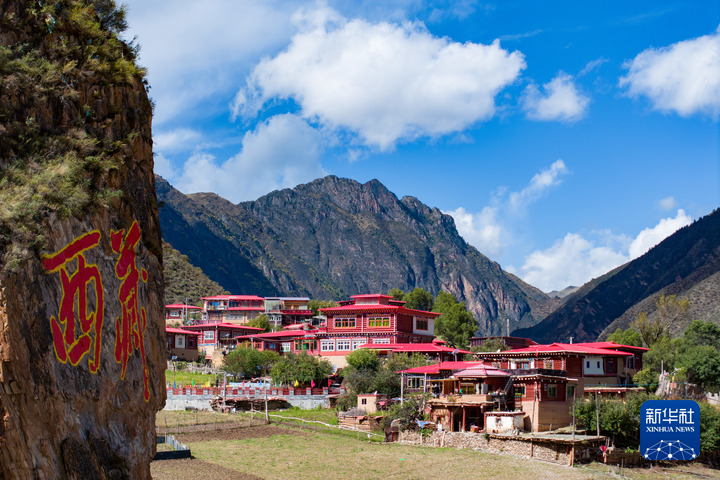 10月21日拍攝的“西藏解放第一村”昌都市江達(dá)縣崗?fù)写宀厥綐欠浚o人機(jī)照片)。旦增努布 攝
