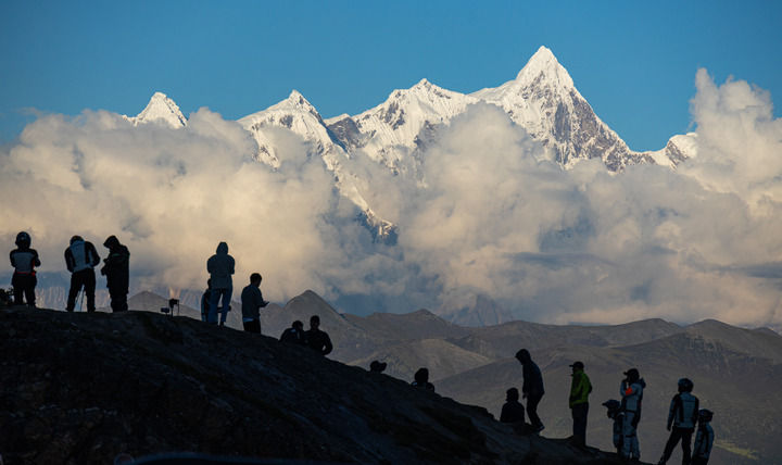游客在色季拉山口的川藏公路邊觀賞南迦巴瓦峰風(fēng)光(2023年9月5日攝)。新華社記者 丁增尼達 攝