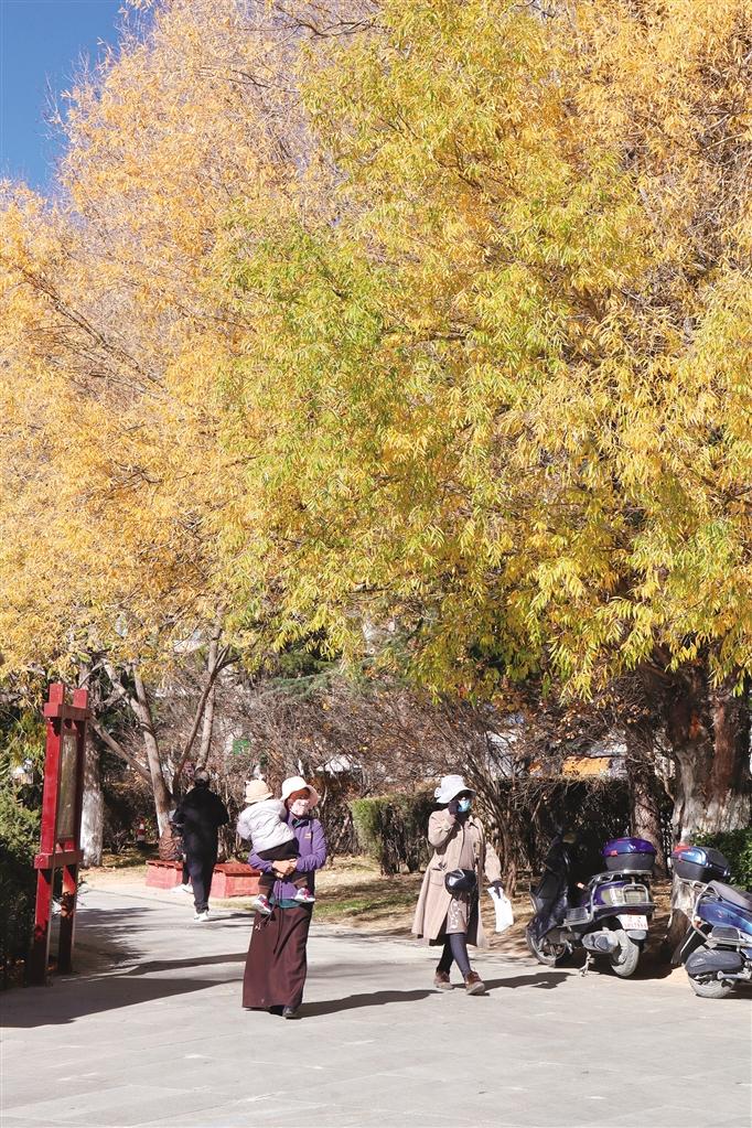 沿著宗角祿康公園湖邊小道悠然前行,湖水波光粼粼,看赤麻鴨與斑頭雁在陽(yáng)光下自在戲水;忙里偷閑,獨(dú)自一人或約上三五好友來(lái)到羅布林卡,享受片刻愜意和閑暇,暫時(shí)屏蔽工作的煩惱和生活的瑣碎,專注感受此刻溜過(guò)林間縫隙的陽(yáng)光。來(lái)自成都的張女士說(shuō):“在成都,冬天難得見(jiàn)到太陽(yáng),一出太陽(yáng),公園草坪上就‘長(zhǎng)’滿了人。而來(lái)到拉薩后,我最愛(ài)下午到公園坐坐,或者去八廓街找家咖啡館,享受曬太陽(yáng)的美好時(shí)光,漫長(zhǎng)的冬日也覺(jué)得日日是好日。”不只是公園,拉薩這座城市的“松弛感”自帶“二十分鐘”效應(yīng),走出家門(mén),無(wú)論是在公園的長(zhǎng)椅上小坐,還是漫步在街頭巷尾,或擇一處甜茶館品茶聊天,日光之城總不會(huì)辜負(fù)你這份熱情。