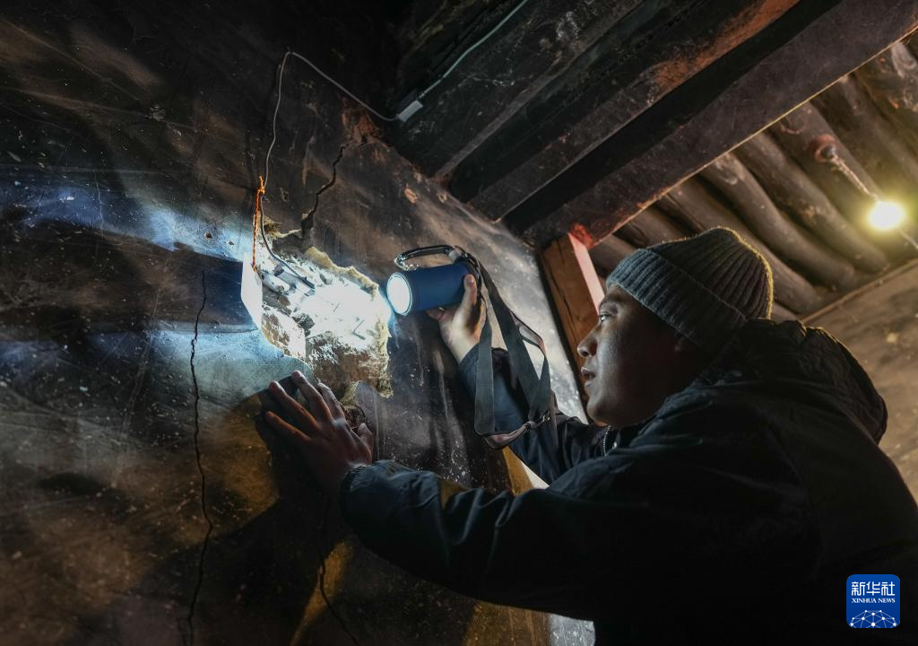12月4日,布達(dá)拉宮監(jiān)測(cè)中心的工作人員旦增旺堆巡查布達(dá)拉宮地壟傳感器設(shè)備。新華社記者 晉美多吉 攝